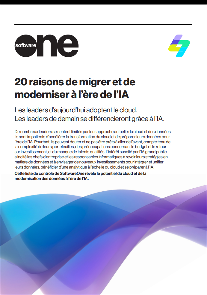 Si ces avantages vous semblent compatibles avec les objectifs de votre entreprise, téléchargez notre liste des 20 raisons de migrer et de moderniser vos systèmes informatiques à l’ère de l’IA. Cette liste illustre les différentes façons dont la modernisation et la migration cloud peuvent vous aider à atteindre l’excellence opérationnelle et une rentabilité accrue, tout en ouvrant la voie à l’innovation. Adoptez pleinement le cloud et aidez votre entreprise à atteindre de nouveaux sommets à l’ère de l’intelligence artificielle.