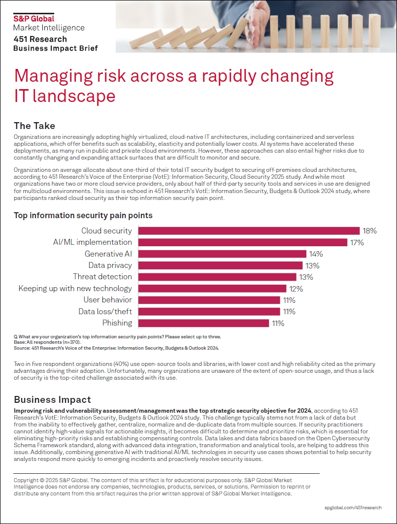 Organizations use one-third of their IT security budget to secure off-premise cloud architectures, according to 451 Research. Download to read more.