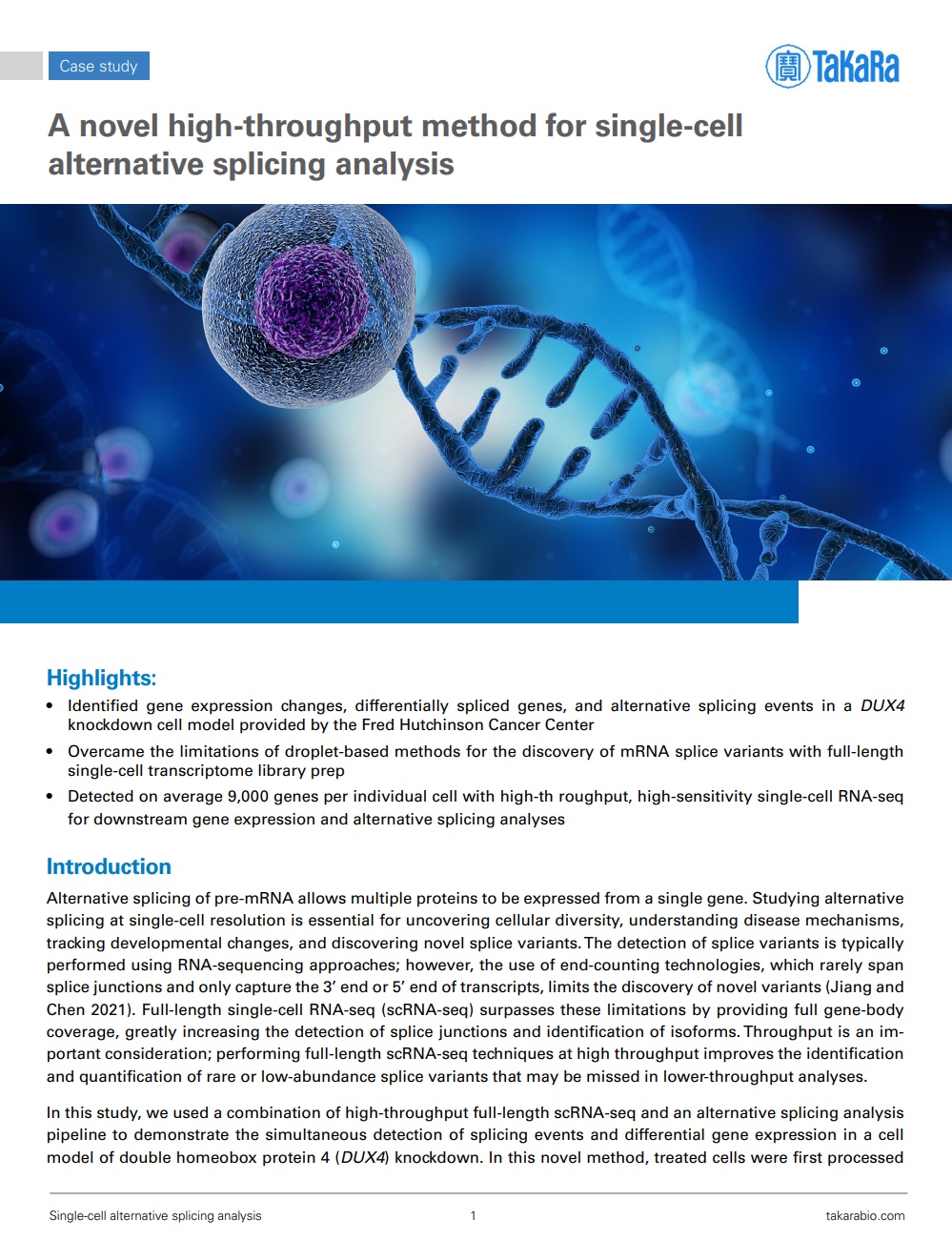 Read this case study to understand how high-throughput full-length scRNA-seq led to the identification of splicing isoforms and DUX4 expression-related biomarkers in a cancer cell line.