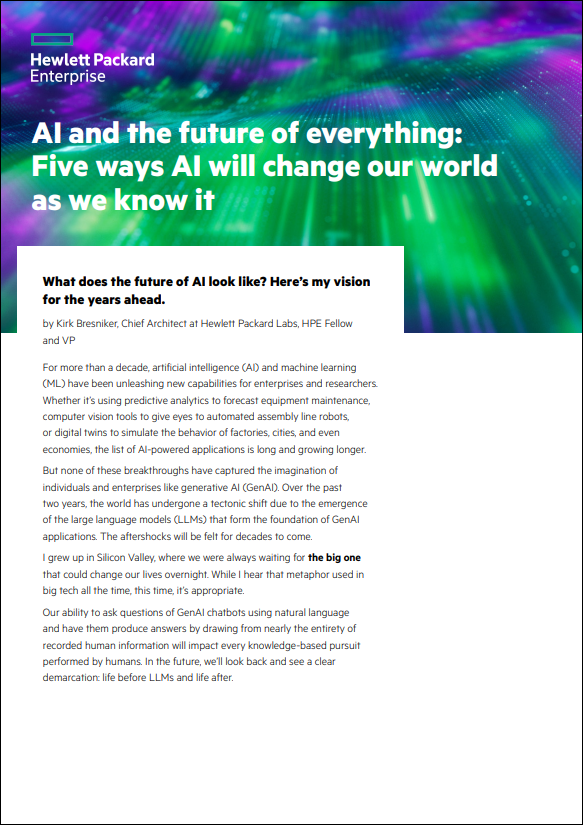 Over the past two years, the world has undergone a tectonic shift due to the emergence of the LLMs that form the foundation of GenAI applications. The aftershocks will be felt for decades to come. What does the future hold for AI? HPE expert Kirk Bresniker predicts what’s ahead in the next decade.