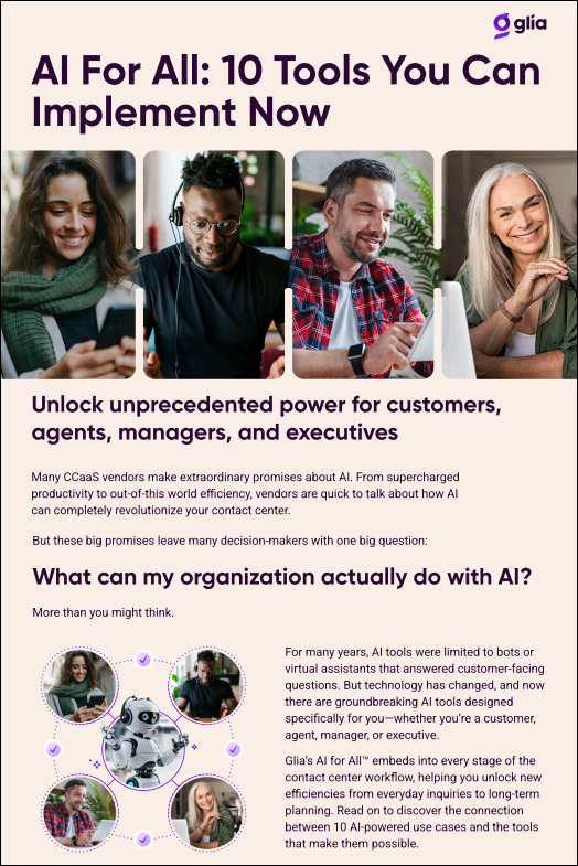 Download the whitepaper to discover 10 AI tools that boost efficiency and empower your entire contact center.