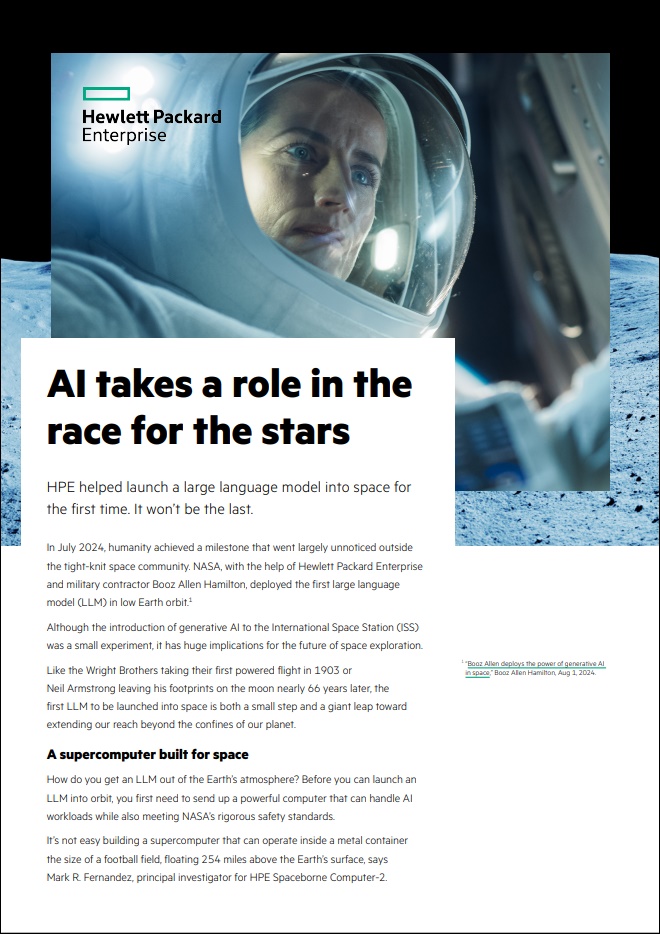 The introduction of generative AI to the International Space Station (ISS) was a small experiment, yet it has huge implications for the future of space exploration. Learn how NASA, HPE, and Booz Allen deployed the first LLM in low earth orbit.