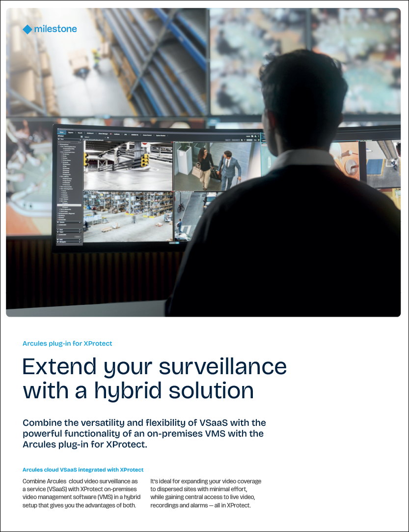 If you have a XProtect Corporate, Expert or Professional+ infrastructure, but you want to include Arcules sites with the power of the cloud, you can accomplish this with the Arcules Plugin for XProtect.