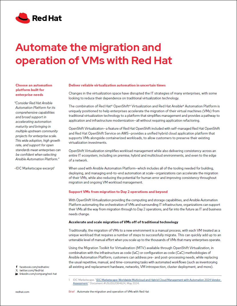 Automate the migration and operation of VMs with Red Hat