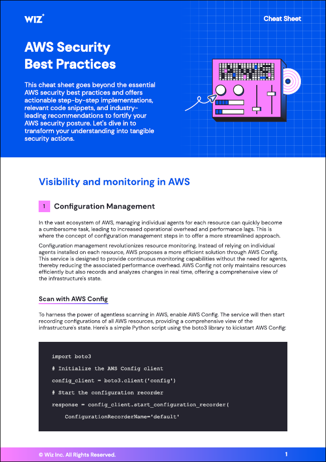 This cheat sheet goes beyond the essential AWS security best practices and offers actionable step-by-step implementations, relevant code snippets, and industry-leading recommendations to fortify your AWS security posture.
