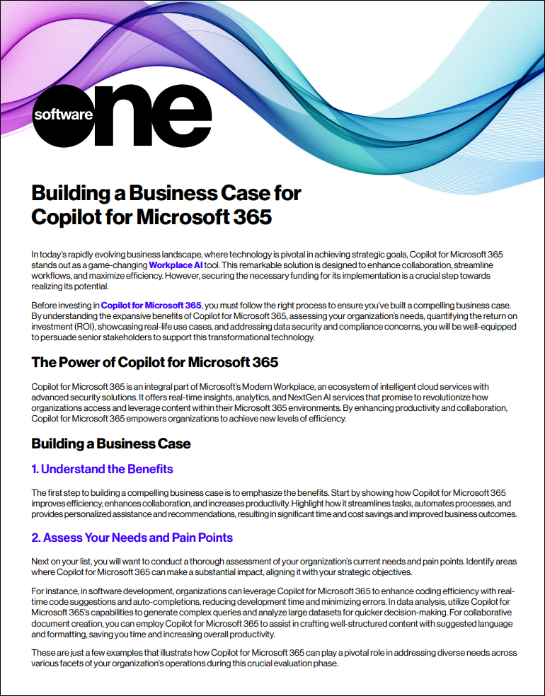 Download now to understand the full potential of Copilot for Microsoft 365 and discover how it can streamline workflows, automate processes, and provide personalized assistance to drive significant time and cost savings.