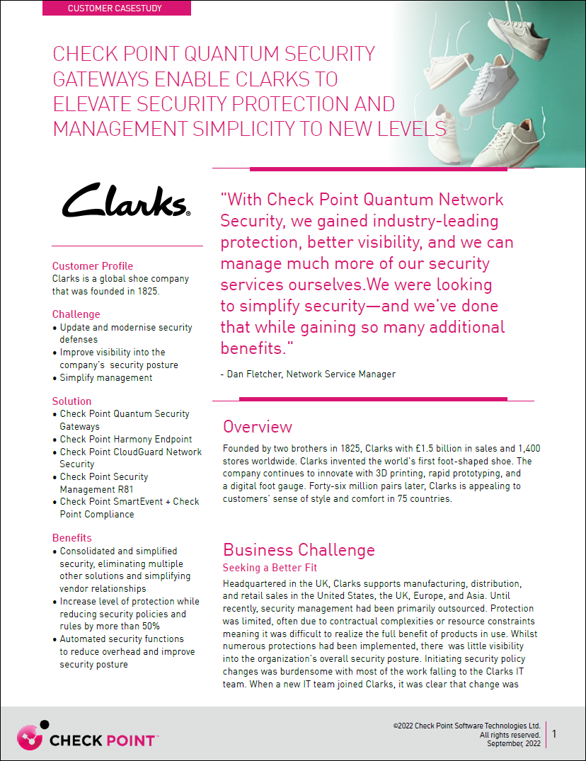 Check Point Quantum Security Gateways Enable Clarks to Elevate Security Protection and Management Simplicity to New Levels