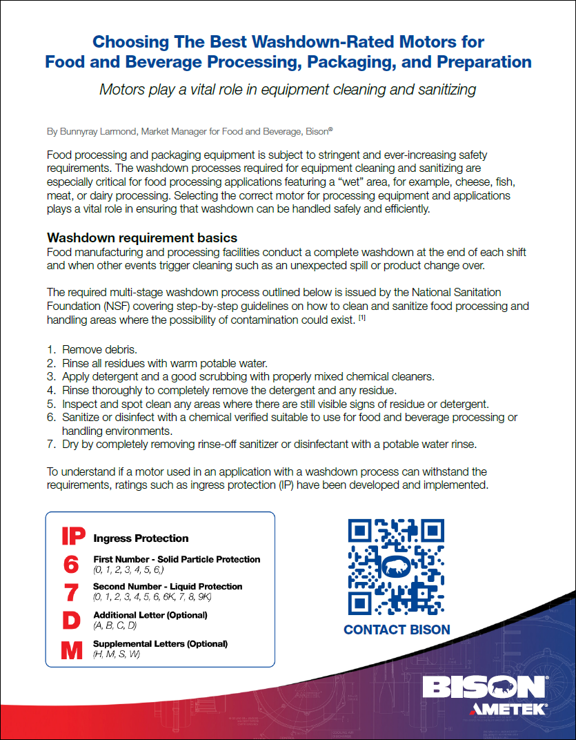 Choosing The Best Washdown-Rated Motors for F&B Equipment