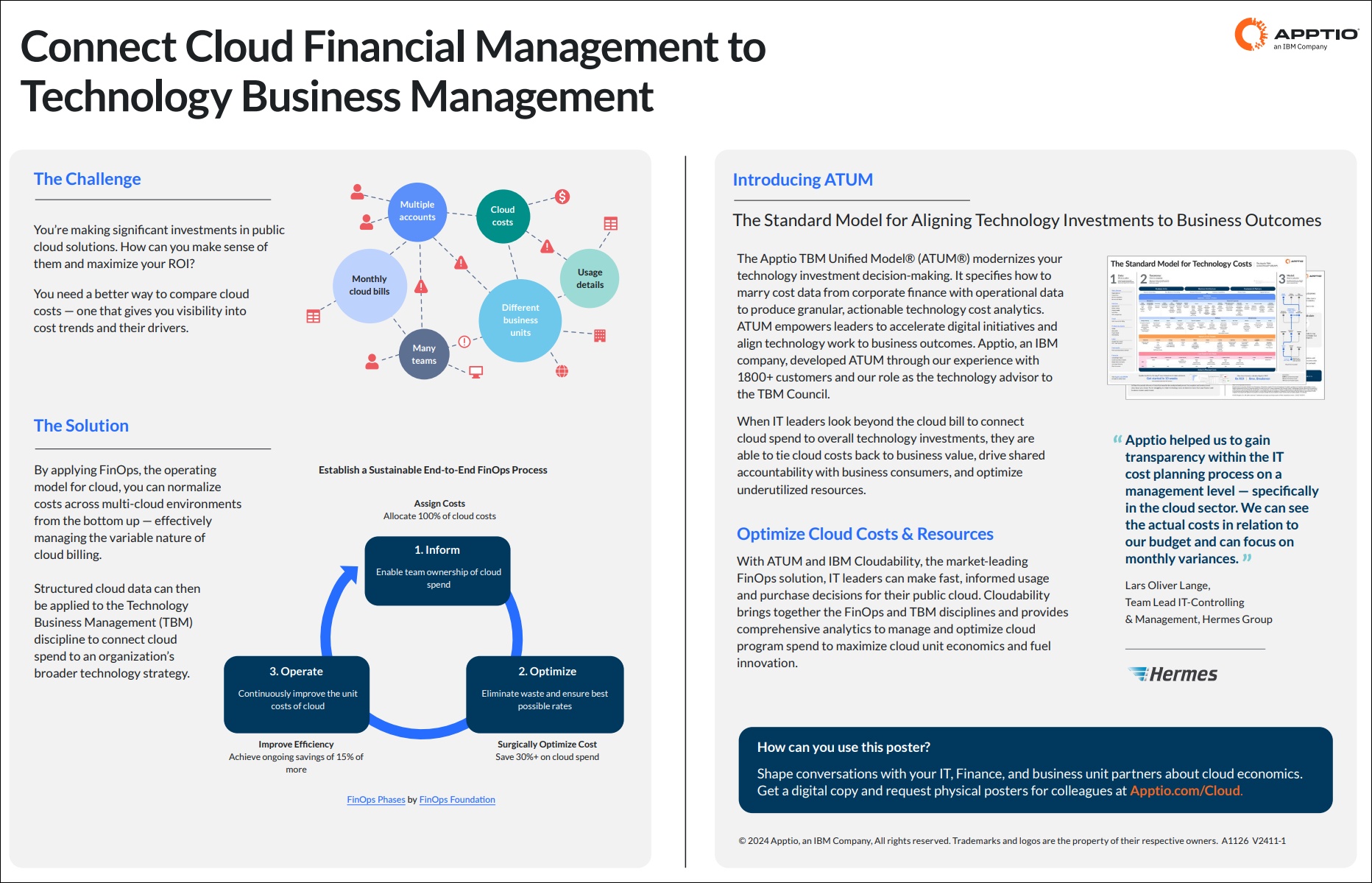 The Apptio TBM Unified Model® (ATUM®) modernizes your technology investment decision-making. It specifies how to marry cost data from corporate finance with operational data to produce granular, actionable technology cost analytics. ATUM empowers leaders to accelerate digital initiatives and align technology work to business outcomes.