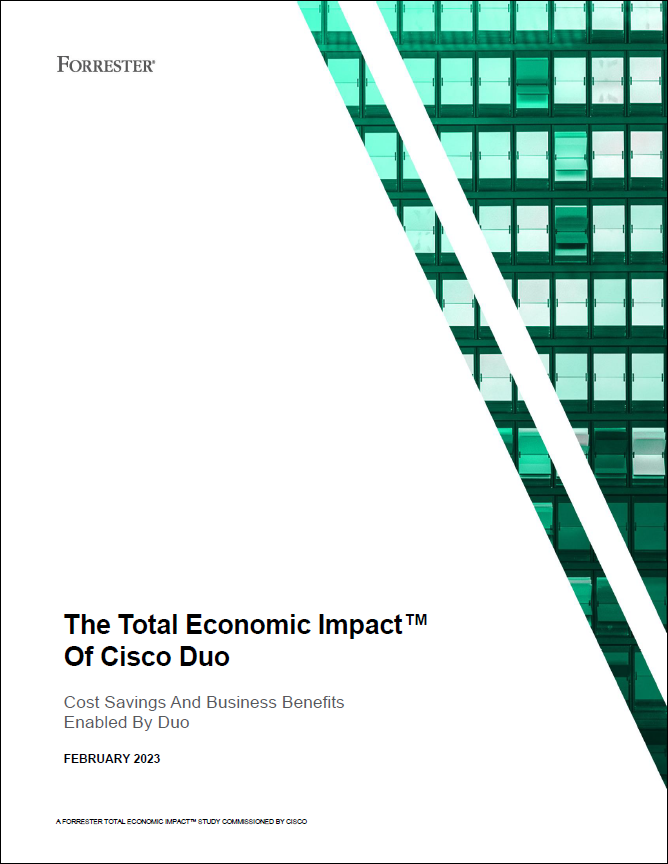 Cisco Secure Access by Duo uses a multi-layered approach to secure access to applications in the cloud or on-premises with multifactor authentication, single sign-on, and device posture checks. To better understand the true cost and value of integrating Duo, Cisco commissioned a Total Economic Impact™ (TEI) study from Forrester Consulting. The study found that a composite organization comprised of real-world Duo customers realized a net present value (NPV) of $3.23 million over three years and a return on investment (ROI) of 159%. But Duo’s benefits extend beyond financial gains. Forrester’s study concluded that implementing Duo led to time savings for end users, help desk staff, security analysts, and IT staff, while reducing the risk of credentials-related security. For a complete look at Duo’s value to a business, get the key financial data points in The TEI of Cisco Duo study.