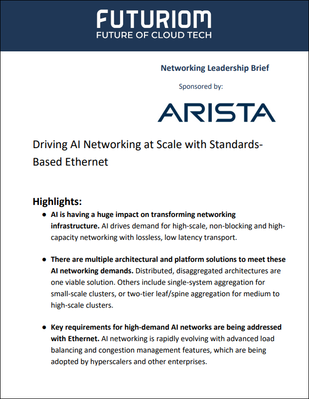 This is an interesting new chapter in the cloud networking revolution. In our new Leadership Brief, we explore how Arista is driving key developments in AI infrastructure and how its many challenges can be solved with innovations applied to broadly adopted technologies such as Ethernet. Read on to find out what to look for in the continuing evolution of AI networking infrastructure.