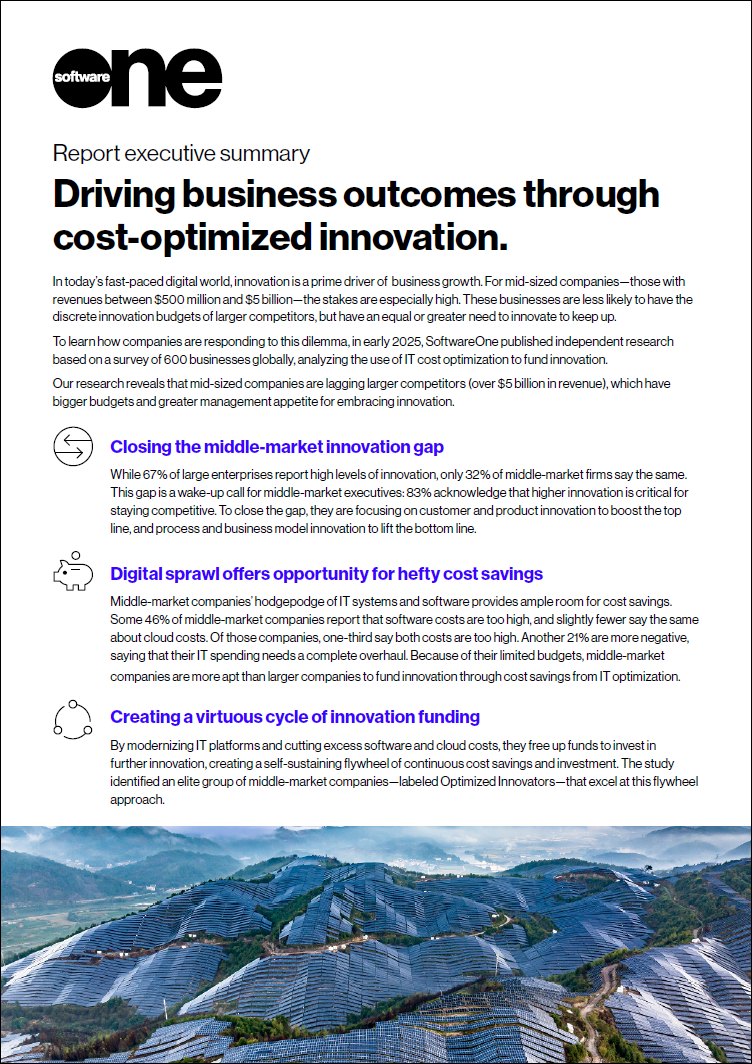 In many cases, haphazardly managed IT estates serve to inhibit the innovation mid-market organizations need to compete. Nearly half of the participants in our research study say their software or cloud costs are too high, and a third report that both software and cloud produce overspend.