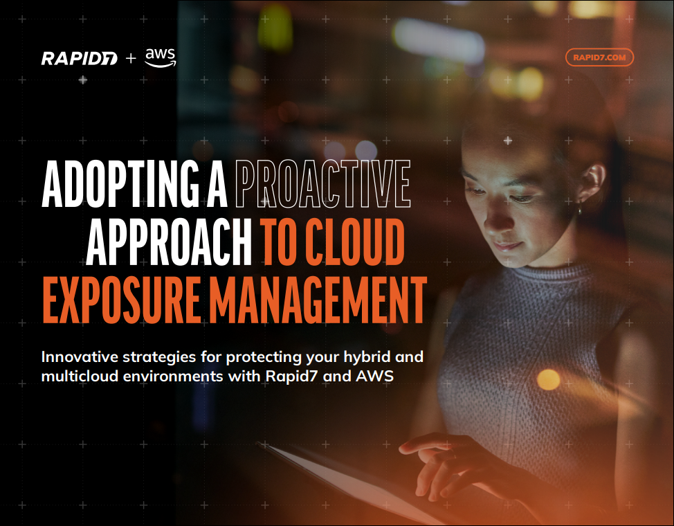 This eBook shows you how to build a proactive exposure management program that reduces your cloud-based risks and how the deeply embedded principles of a strong EM program can be achieved through the partnership of Rapid7 and AWS.