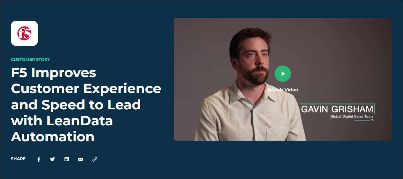 Watch this video to find out more about how F5 improved their customer experience and speed to lead with LeanData Automation.