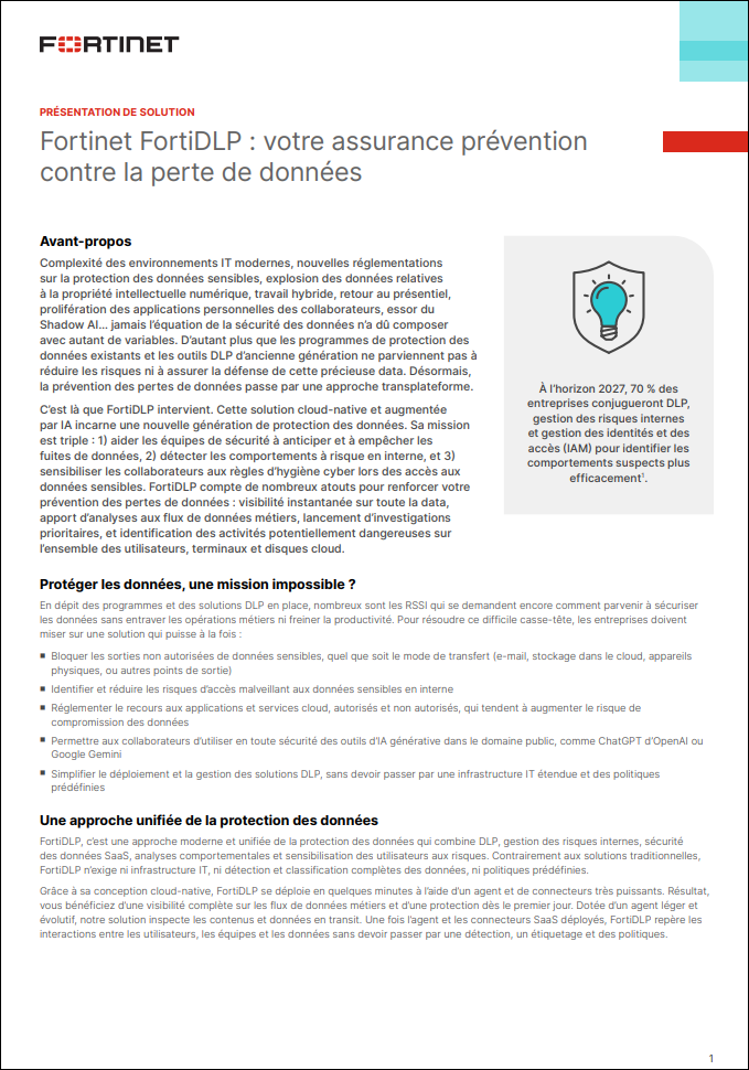 Fortinet FortiDLP : votre assurance prévention contre la perte de données