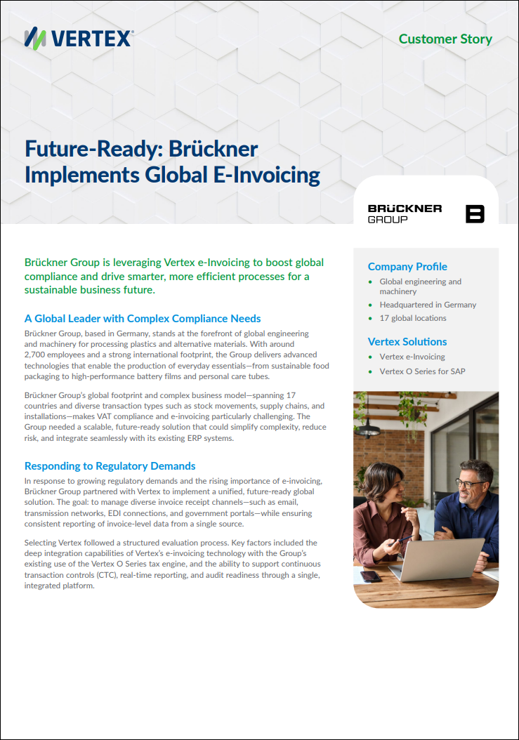 Read our case study to learn how Vertex e-Invoicing helped the Group boost global compliance and drive smarter, more efficient processes for a sustainable business future.