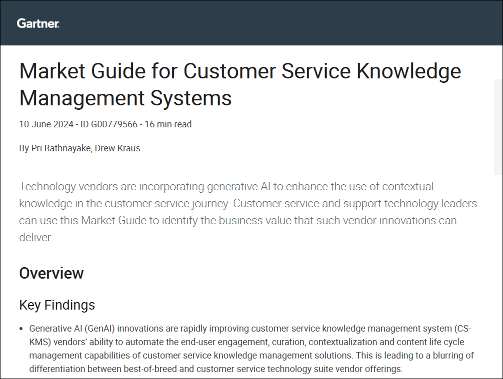Gartner® Market Guide for Customer Service Knowledge Management Systems