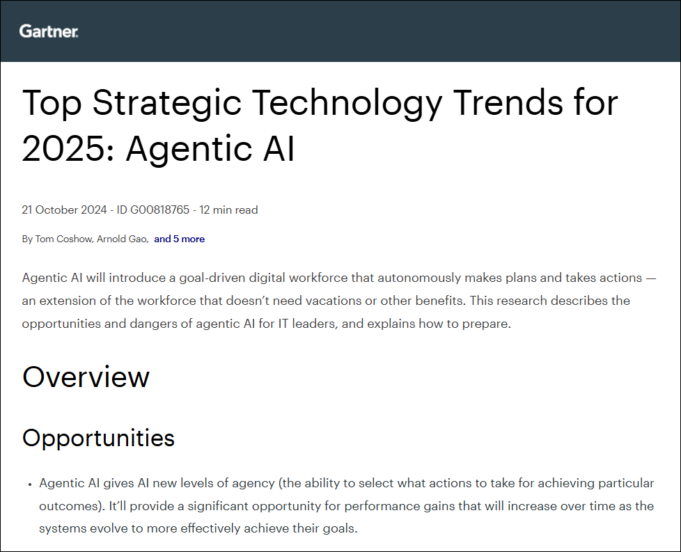 Gartner, Top Strategic Technology Trends for 2025: Agentic AI, Tom Coshow, Arnold Gao, 21 October 2024