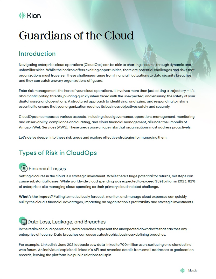 Dive into our white paper, Guardians of the Cloud about how automated cloud operations can help you delve deep into risk areas, explore effective strategies for managing them, and discuss the importance of staying informed in today’s cloud-driven world.