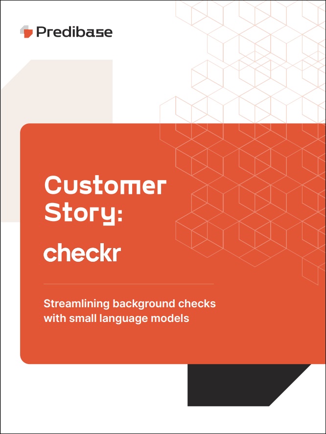 Checkr, the leading background check platform, needed a better way to handle the toughest 2% of cases that traditional ML couldn’t classify accurately. With Predibase, they fine-tuned a llama-3-8B model to outperform GPT-4—achieving 90%+ accuracy, 30x faster inference, and 5x lower costs. This case study reveals how Checkr streamlined its AI pipeline, eliminated latency bottlenecks, and scaled with confidence using multi-LoRA deployment on Predibase.