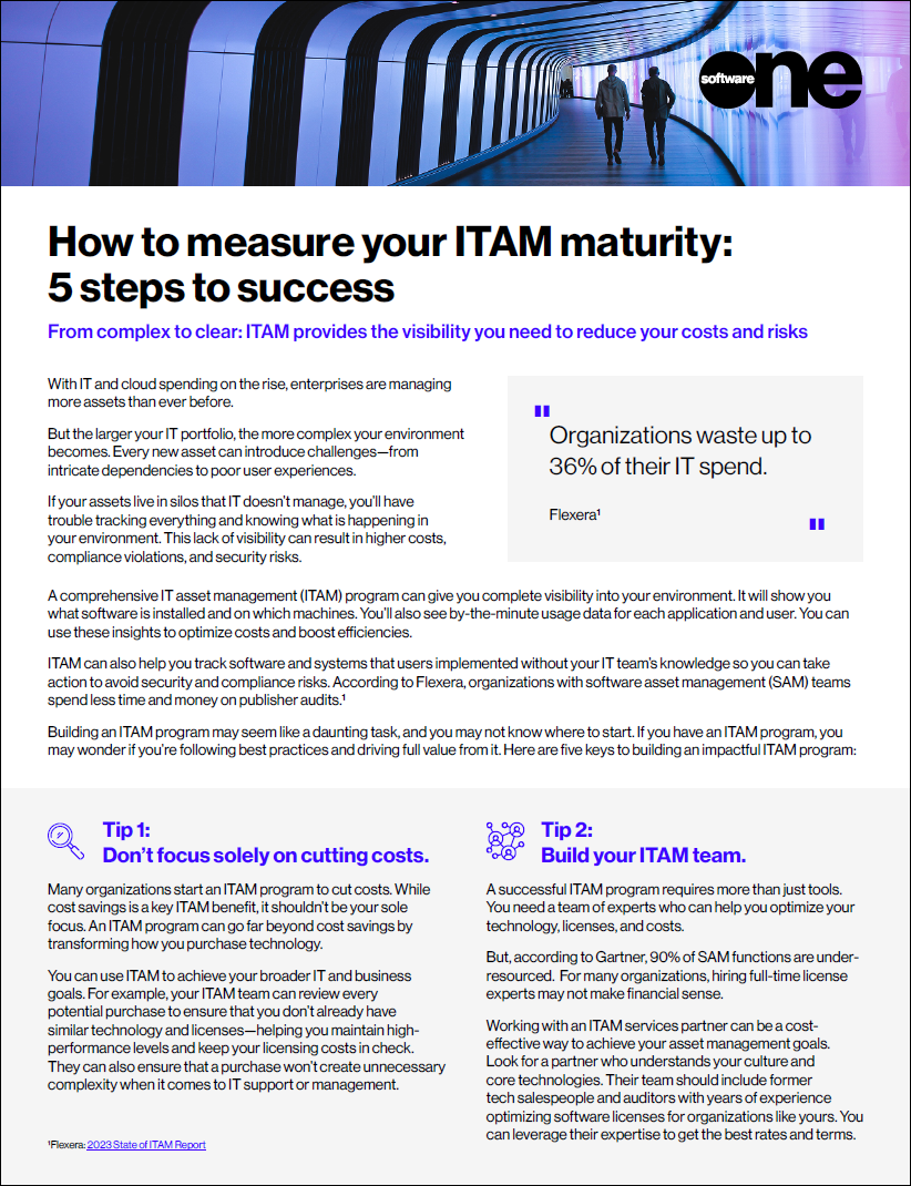 An ITAM program gives you visibility into all your assets across your on-premises and cloud environments. It allows you to see what software is installed and who is using it. These insights can help you cut costs, optimize your licenses, and minimize security risks.