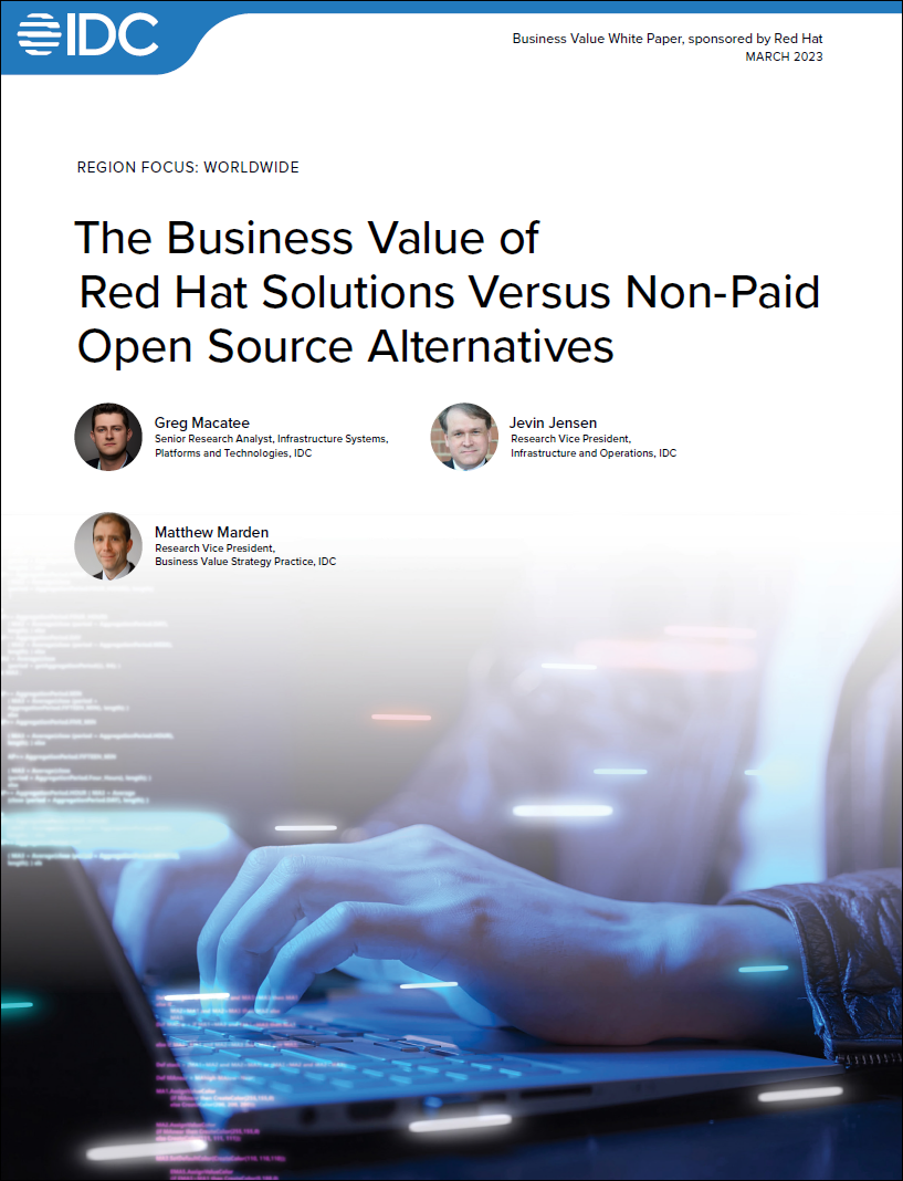 This whitepaper offers findings from IDC’s research on using Red Hat solutions as opposed to non-paid open source alternatives. Read the study.