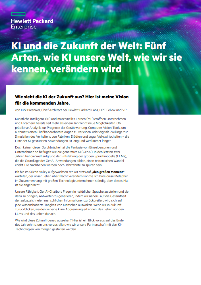 In den letzten zwei Jahren hat die Welt aufgrund der Entstehung der Large Language Models (LLMs), die die Grundlage der GenAI-Anwendungen bilden, einen tektonischen Wandel erlebt. Die Nachbeben werden noch Jahrzehnte lang zu spüren sein. Was birgt die Zukunft für künstliche Intelligenz? Der HPE Experte Kirk Bresniker wirft einen Blick darauf, was im nächsten Jahrzehnt auf uns zukommt.