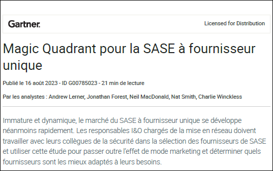 Magic Quadrant pour la SASE à fournisseur unique