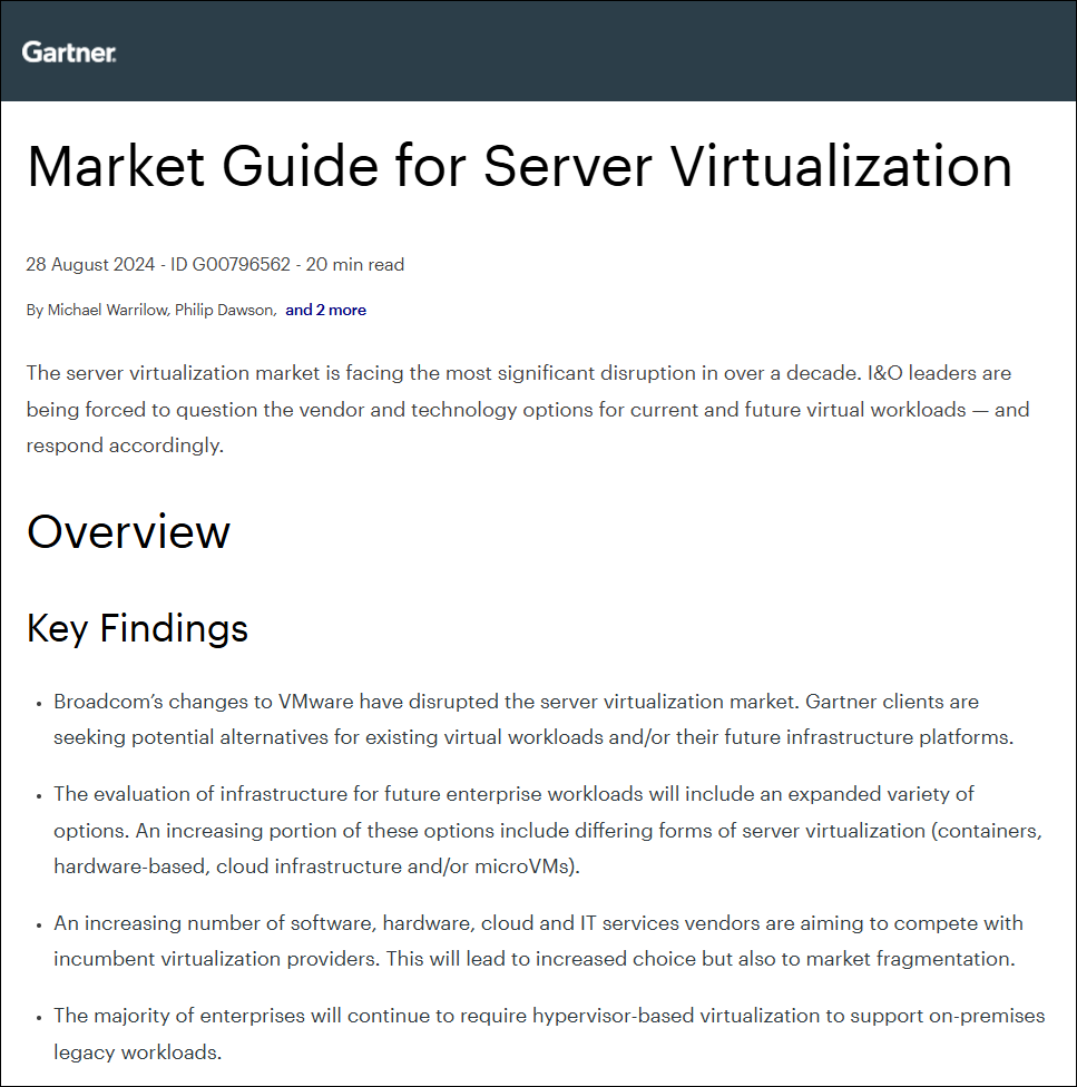 The server virtualization market is facing the most significant disruption in over a decade. I&O leaders are being forced to question the vendor and technology options for current and future virtual workloads — and respond accordingly.