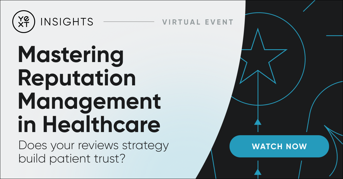 With a staggering 93% of patients consulting online reviews before making a healthcare decision and an evolving search landscape, reviews are more important now than ever — and healthcare organizations need to master reputation management. Watch now to learn best practices for monitoring online reviews and crafting effective responses.