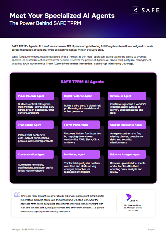 SAFE delivers 100% autonomous third-party risk management—powered by purpose-built AI agents.