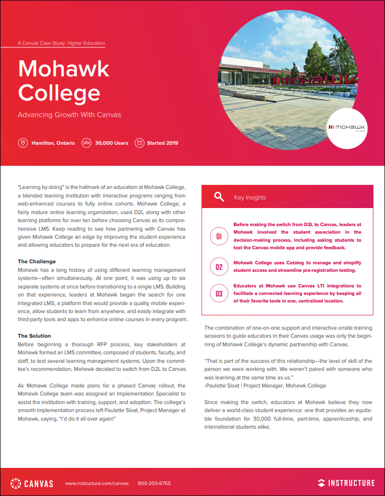 Read this case study to see how Mohawk College enhanced learning with Canvas.