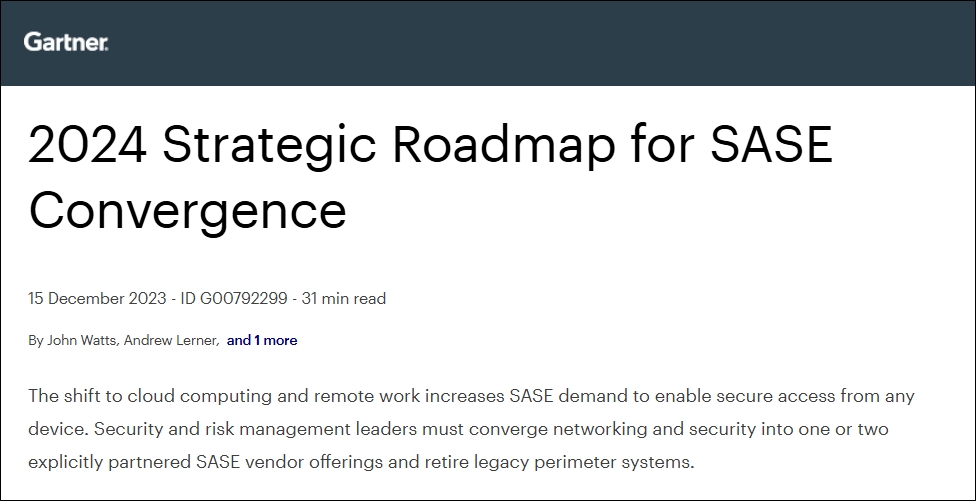 Gartner, 2024 Strategic Roadmap for SASE Convergence, 15 December 2023, John Watts, Andrew Lerner, Neil MacDonald