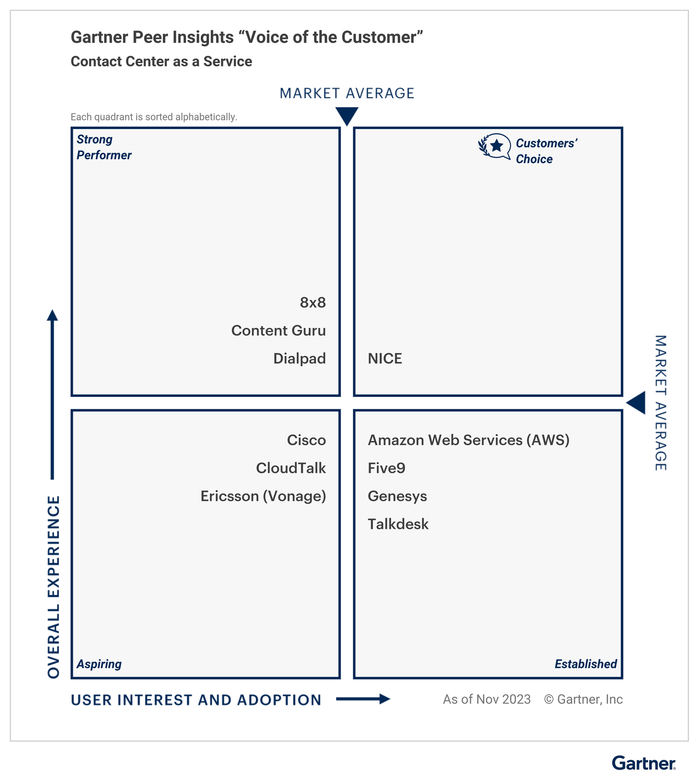 Gartner® named NICE the only Customers’ Choice CCaaS vendor in its 2024 Peer Insights™ “Voice of the Customer for Contact Center as a Service” report.