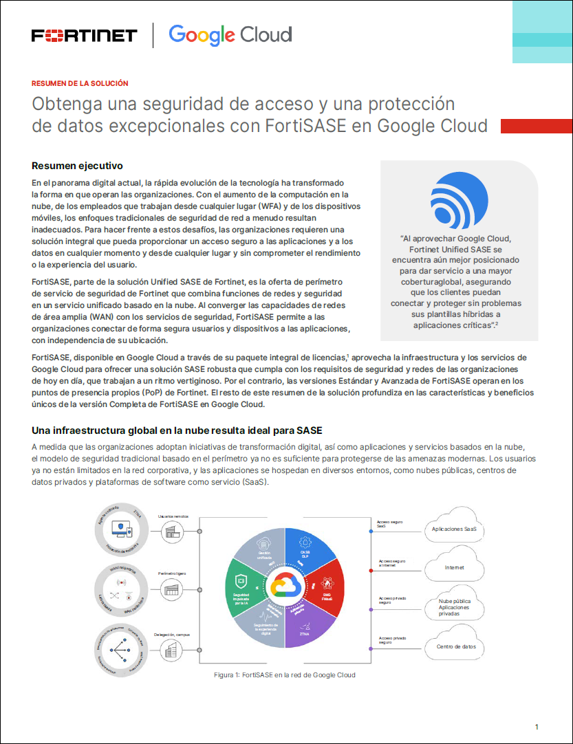 Obtenga una seguridad de acceso y una protección de datos excepcionales con FortiSASE en Google Cloud