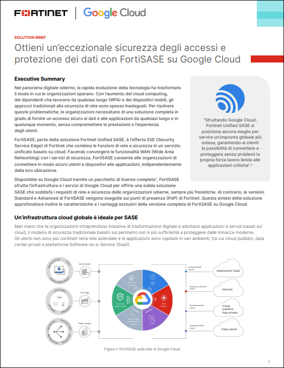 Ottieni un’eccezionale sicurezza degli accessi e protezione dei dati con FortiSASE su Google Cloud