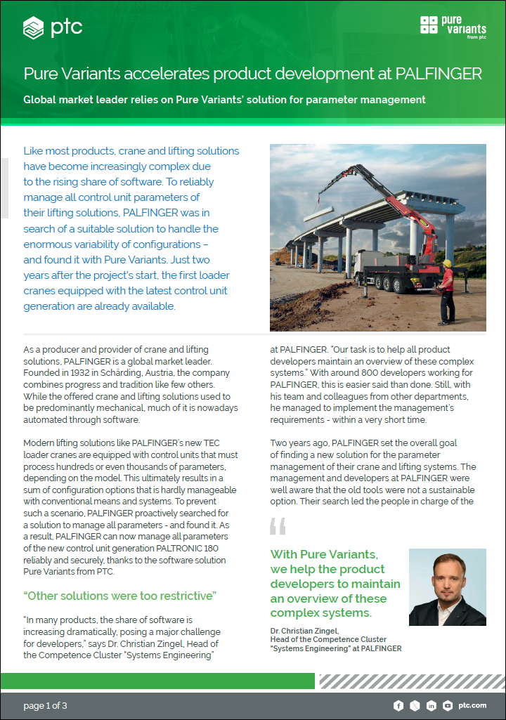 Download the case study now to discover how PALFINGER accelerated product development and streamlined configuration management with Pure Variants.