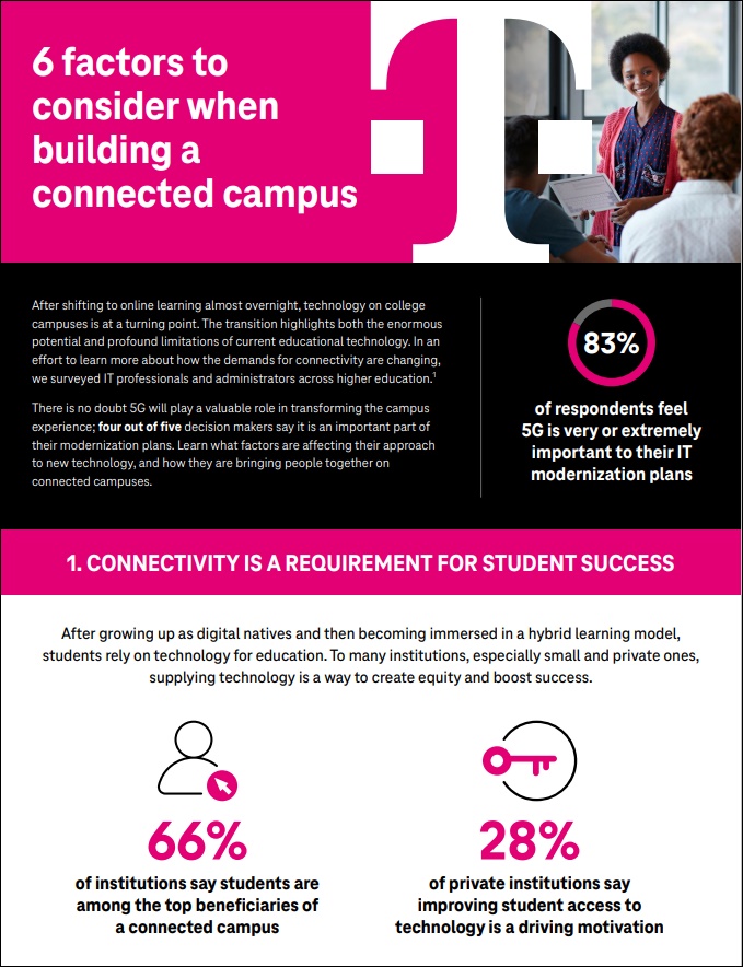 - Close to 83% of higher education IT professionals and administrators say that 5G is extremely important for their modernization plans.