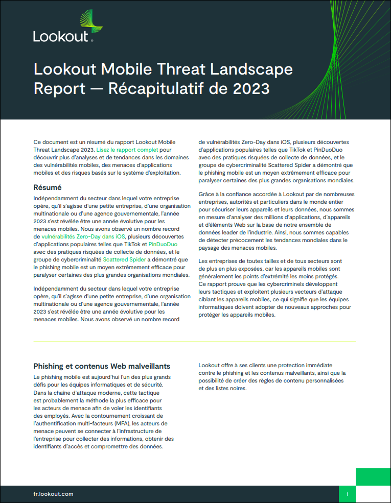 Lookout Mobile Threat Landscape Report — Récapitulatif de 2023