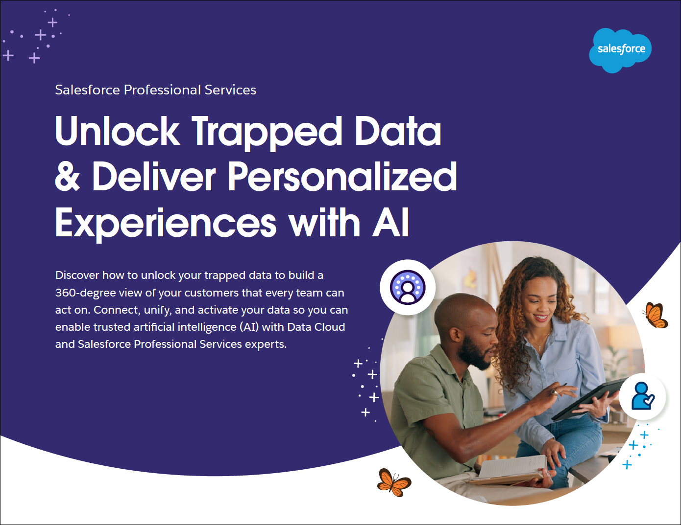 Discover how to unlock your trapped data to build a 360-degree view of your customers that every team can act on. Connect, unify, and activate your data so you can enable trusted artificial intelligence (AI) with Data Cloud and Salesforce Professional Services experts.