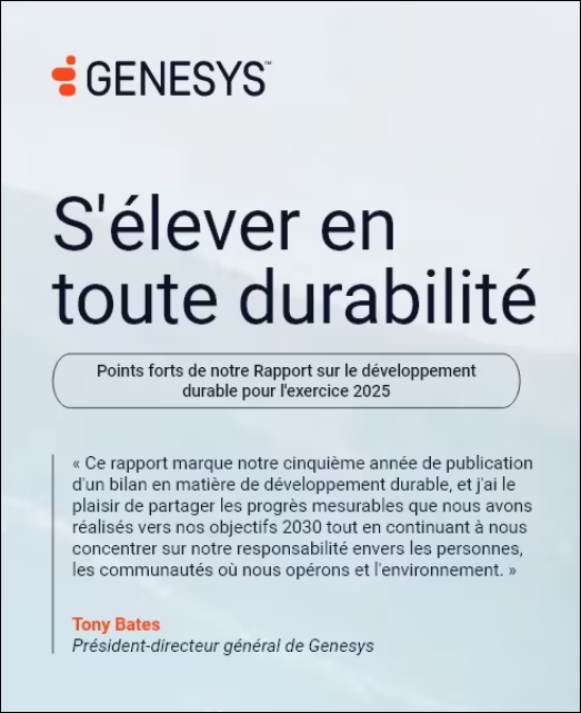Téléchargez cette infographie et découvrez comment Genesys s’engage à minimiser son impact environnemental, avec pour objectif d’atteindre la neutralité carbone d’ici 2040.
