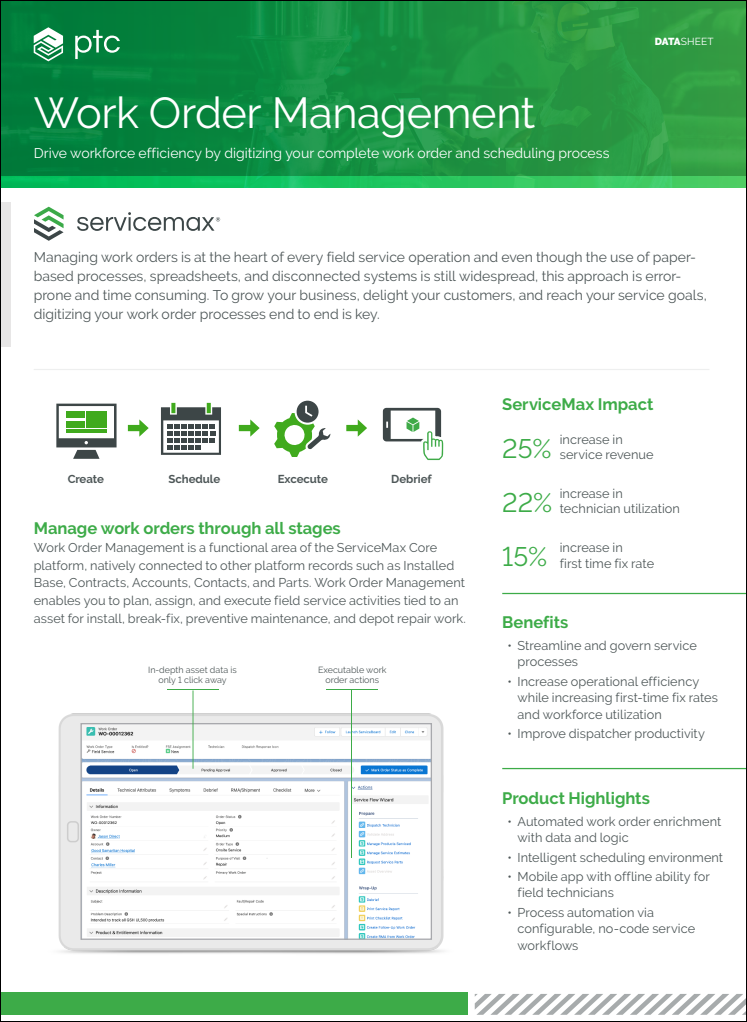 Download the datasheet to see how you can replace error-prone, paper-based systems with automated, streamlined service workflows.