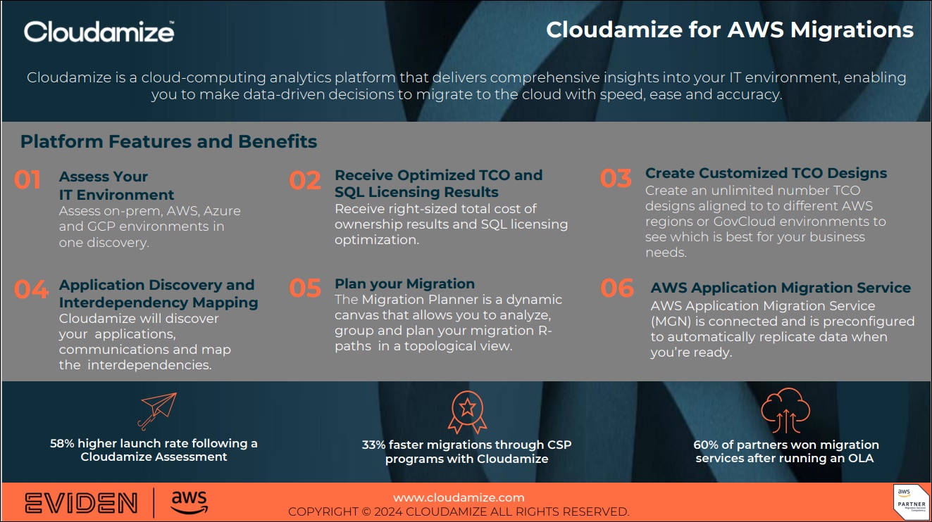Cloudamize is a cloud-computing analytics platform that delivers comprehensive insights into your IT environment, enabling you to make data-driven decisions to migrate to the cloud with speed, ease and accuracy.
