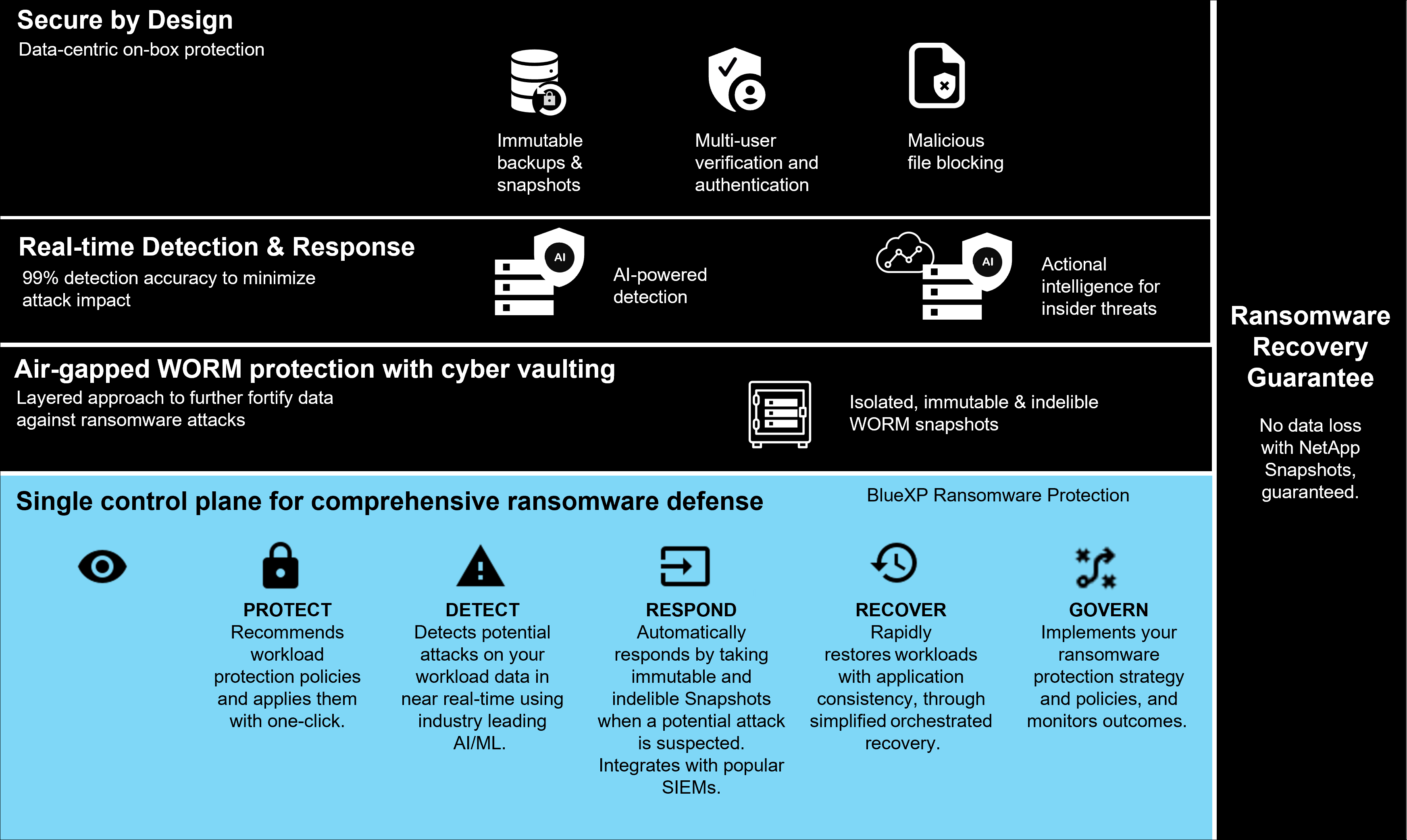 Organizations must look across their entire security posture from perimeter, network, identity, application, and where the data lives at the storage level and secure these layers. Adopting a data-centric approach to cyber protection at the storage layer is crucial in today’s threat landscape. Although no single solution can thwart all attacks, using a portfolio of solutions, including partnerships and third parties, provides a layered defense.