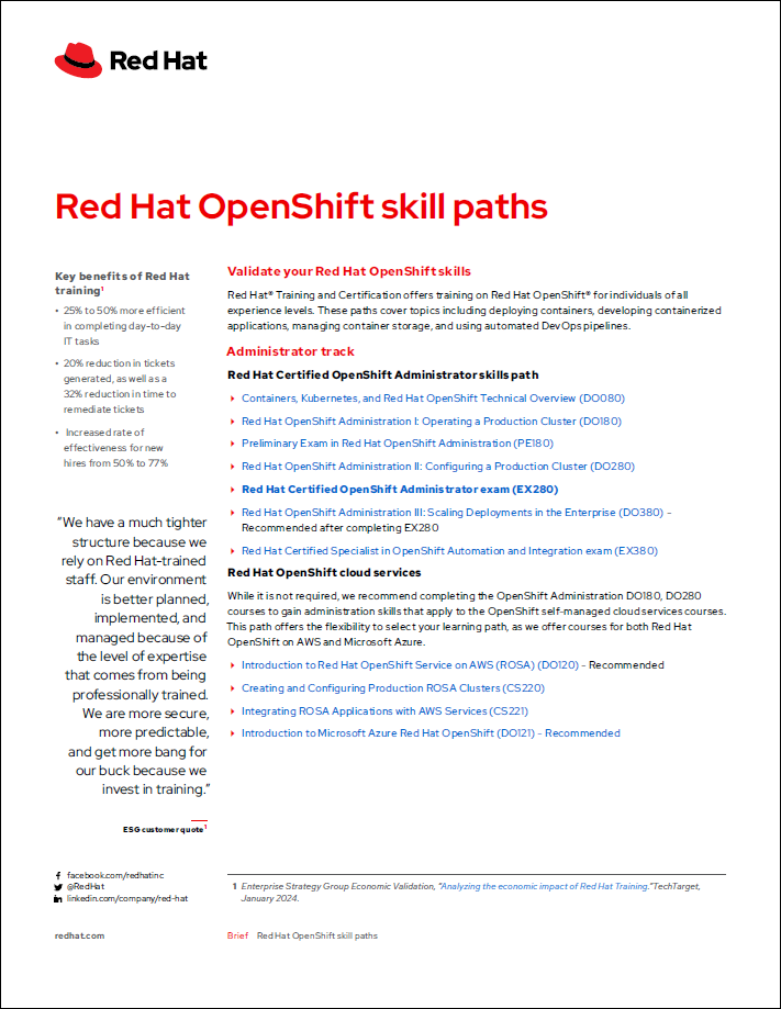 Download this brief to learn how to validate your Red Hat OpenShift skills.