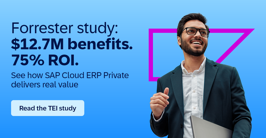SAP Cloud ERP Private, enabled by the RISE with SAP journey, modernizes your operations, reduces IT burden, and improves performance across the enterprise. Now, a new Forrester Total Economic Impact™ study commissioned by SAP quantifies the financial and operational benefits for a composite organization based on interviewed customers.>
