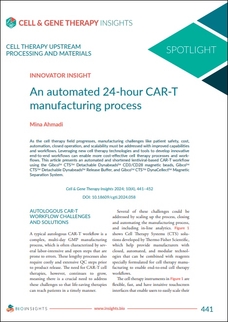 - An outline of the process and results to shorten and automate a CAR T workflow from 7 days to 24 hours