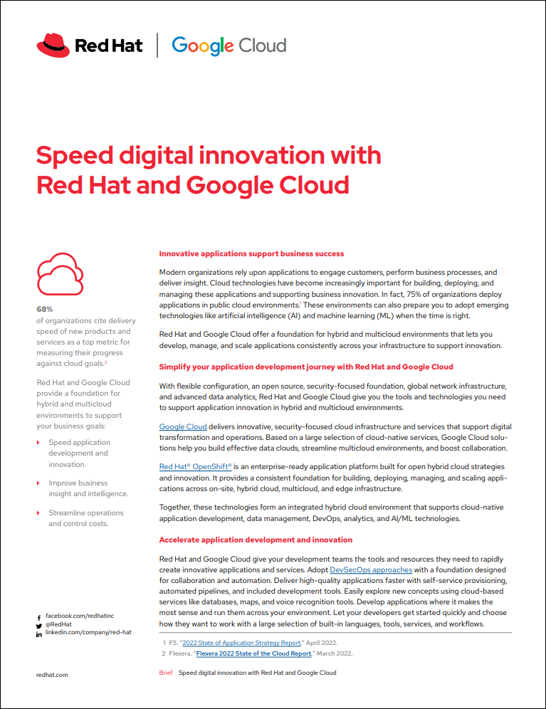 Red Hat and Google Cloud provide a foundation for hybrid and multicloud environments to support your business goals.