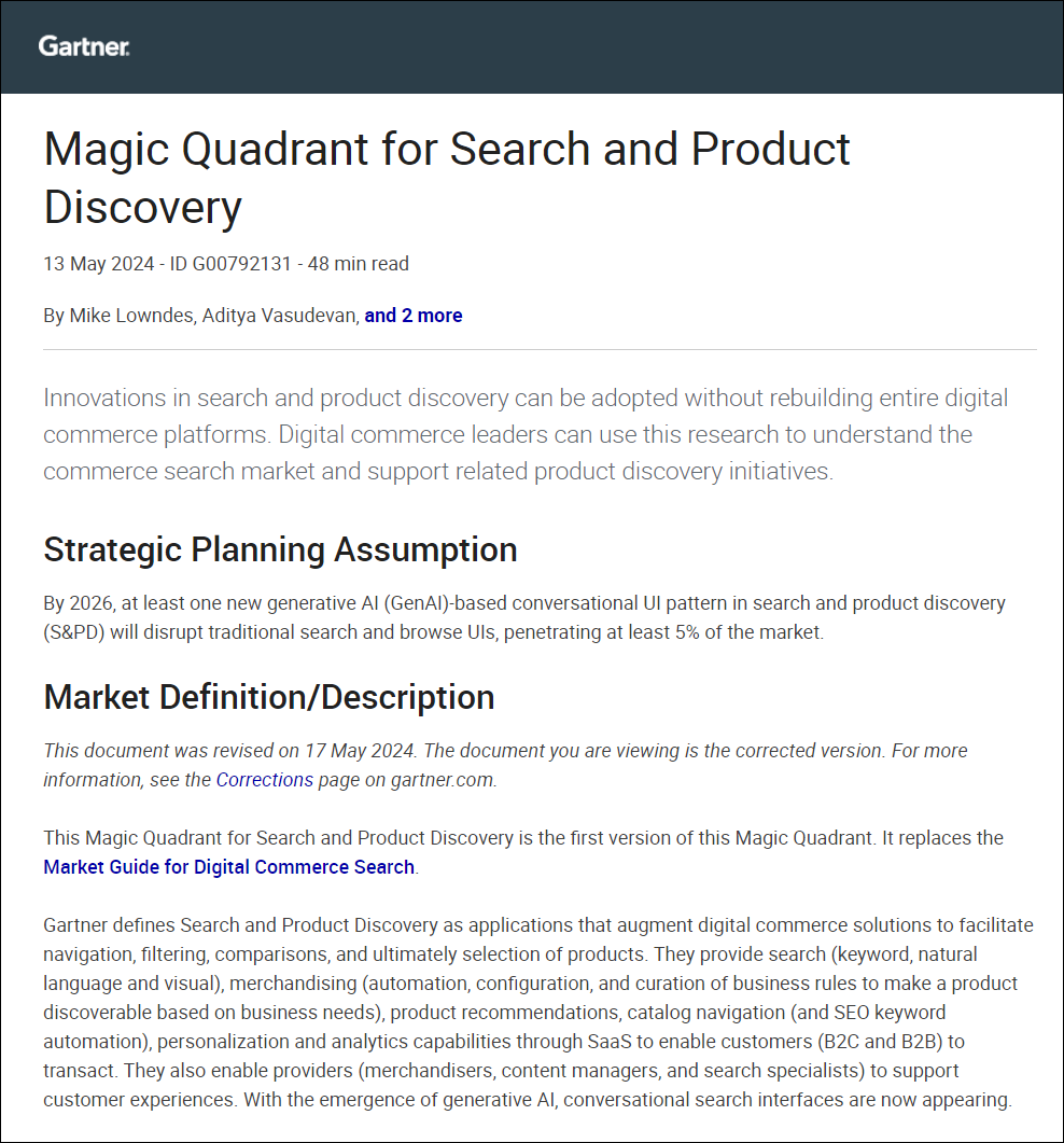 The 2024 Gartner® Magic Quadrant™ for Search and Product Discovery