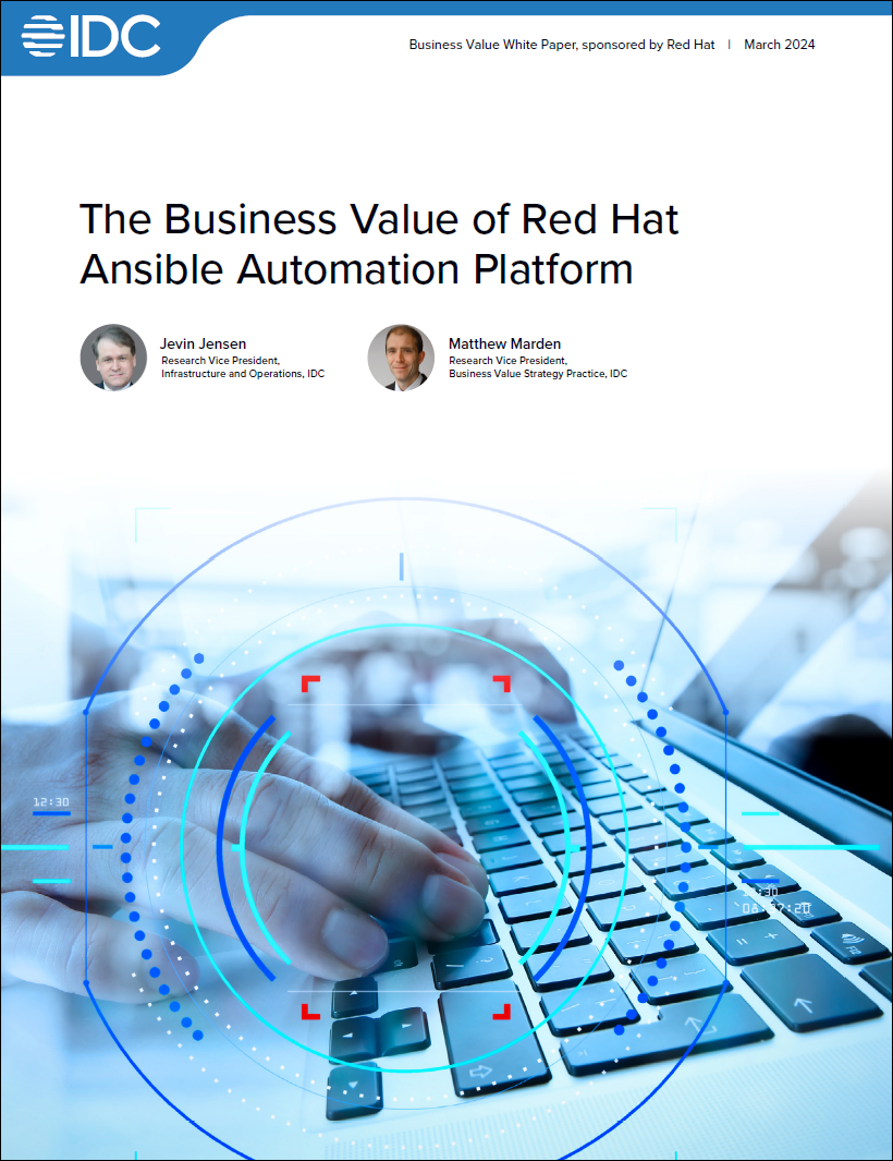 IDC explored the benefits of using the Red Hat Ansible Automation Platform to standardize and automate IT operations across environments and teams. Research showed that organizations experienced a 61% reduction in unplanned downtime. In addition, these organizations were able to increase efficiency in IT and network infrastructure management. Furthermore, public cloud management was 28% more efficient and network management was 38% more efficient.